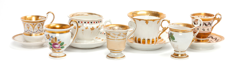 A Collection of Continental Porcelain Cups and Saucers