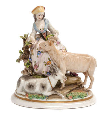 depicting a shepherdess with goats.