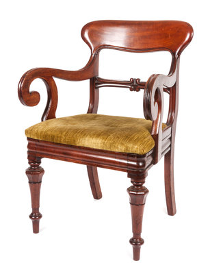 having a horizontal splat above the upholstered seat, raised on tapering legs.