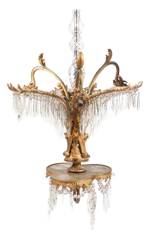 having three beaded glass leaf form diffusers within a foliate cast frame.