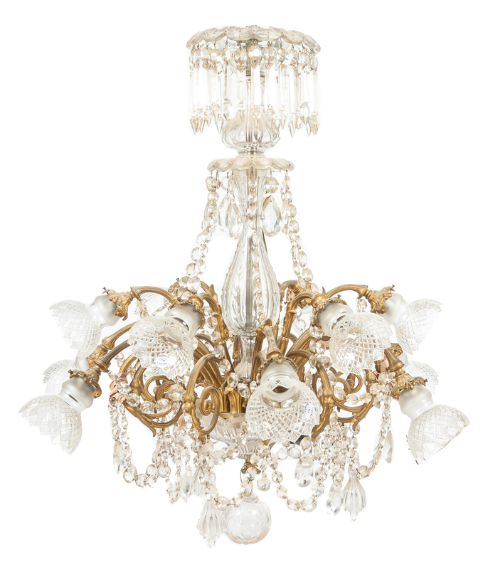 A Gilt Bronze and Cut Glass Twelve-Light Chandelier