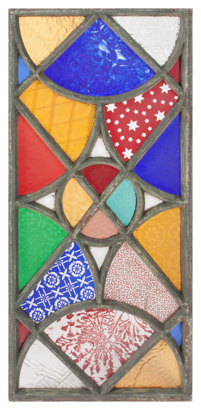 of rectangular form, together with two leaded beveled glass windows.