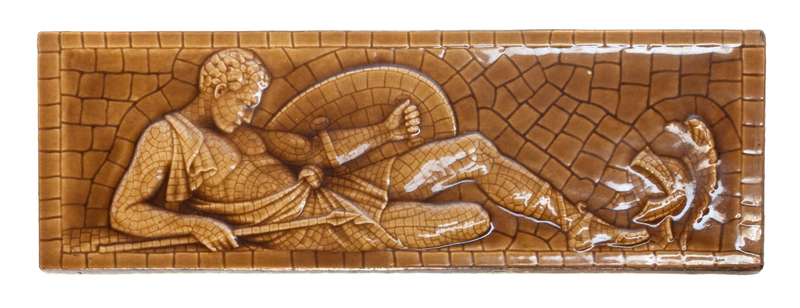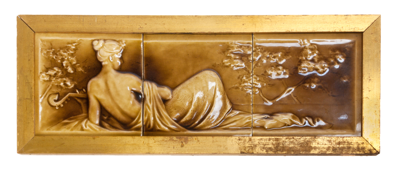 comprising two Classical soldiers, the third a reclining female.