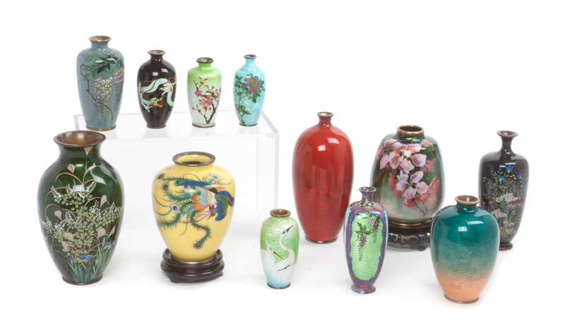 Twelve Japanese Cloisonne Enamel Vases