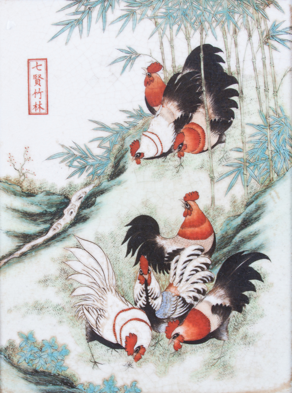 Two Chinese Polychrome Enameled Porcelain Plaques