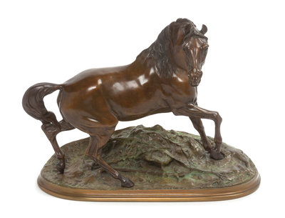 depicting a standing horse, signed P.J. Mene.
