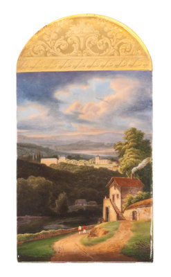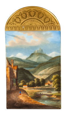depicting a mountainous landscape, framed, together with an unframed example, 2 items total.