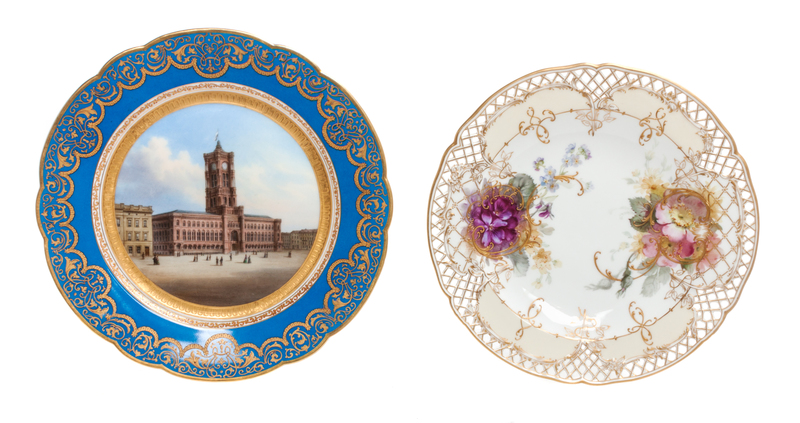 the first decorated with the Rath House in Berlin, the second with reticulated edge and flowers.