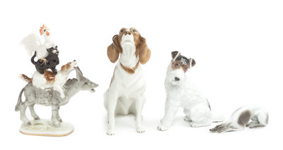 comprising three dogs and an allegorical figural group depicting the Musicians of Bremen.