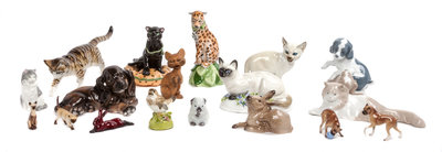 Eighteen Assorted Porcelain, Wood and Composite Figures