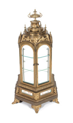 A Sevres Style Porcelain Inset Bronze Table Top Vitrine