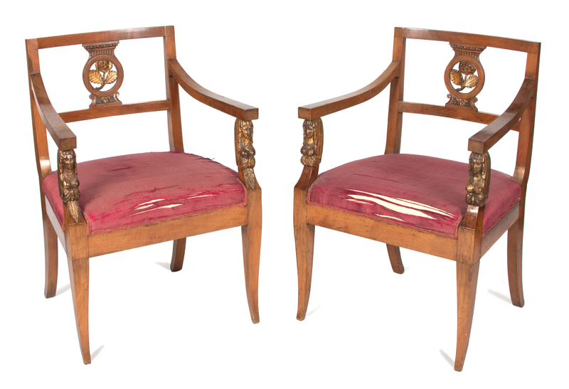 A Pair of Empire Style Parcel Gilt Fauteuils
