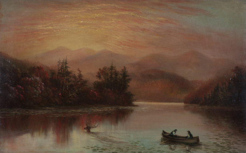 Autumn Lake Landscape with Fishing Boat