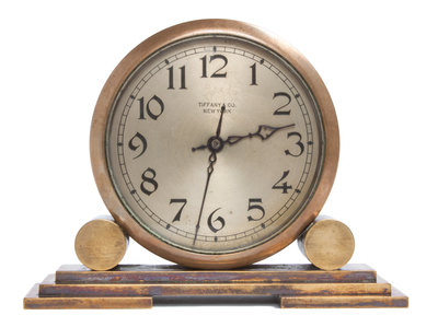 An Art Deco Brass Desk Clock