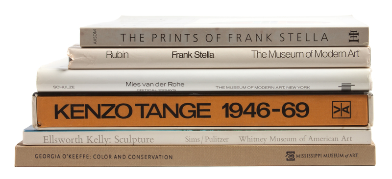 comprising Georgia O'Keeffe: Color and Conservation, The Prints of Frank Stella: A Catalogue Raisonne 1967-1982, Frank Stella, Ellsworth Kelly: Sculpture, Mies van der Rohe: Critical Essays, and Kenzo Tange: Architecture and Urban Design.