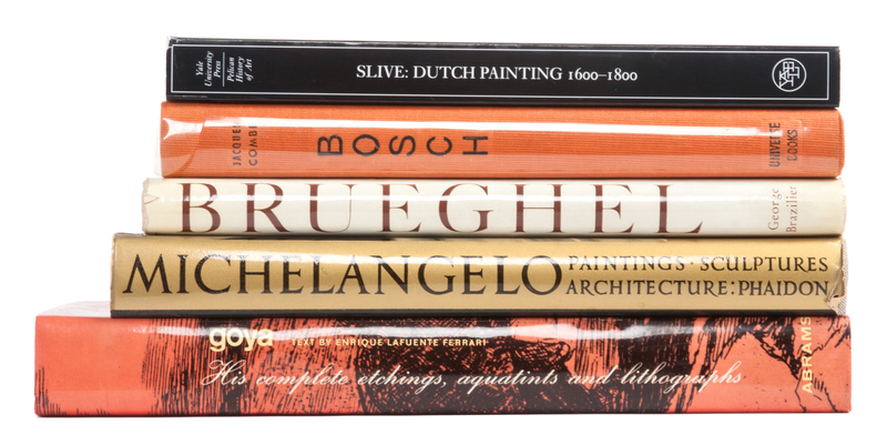 comprising Brueghel, Hieronymus Bosch, Michaelangelo: Paintings, Sculptures, Architecture, Dutch Painting 1600-1800, and Goya: His Complete Etchings, Aquatints and Lithographs.