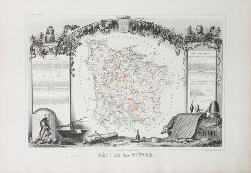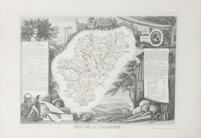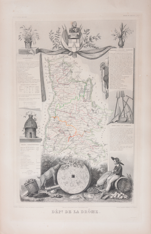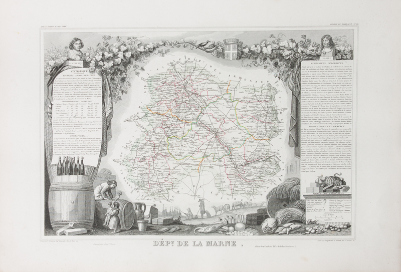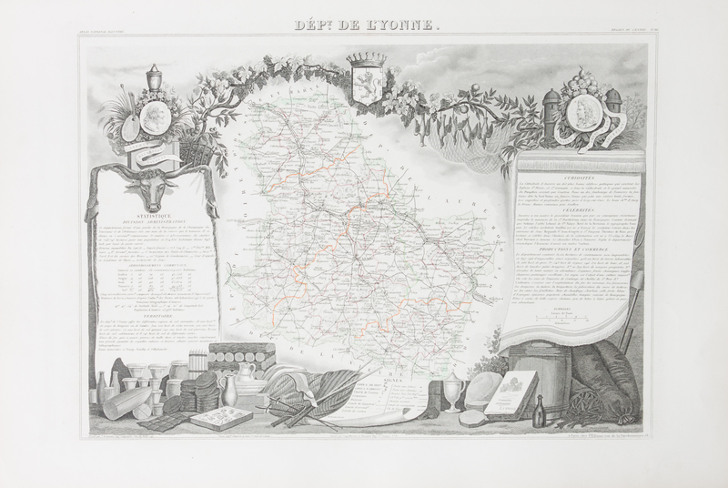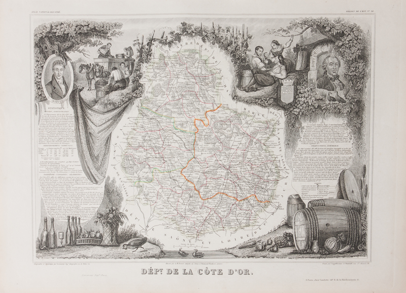 comprising maps of wine-producing regions from Atlas National Illustre, unframed.