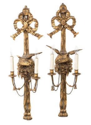 A Pair of Continental Giltwood Two-Light Sconces