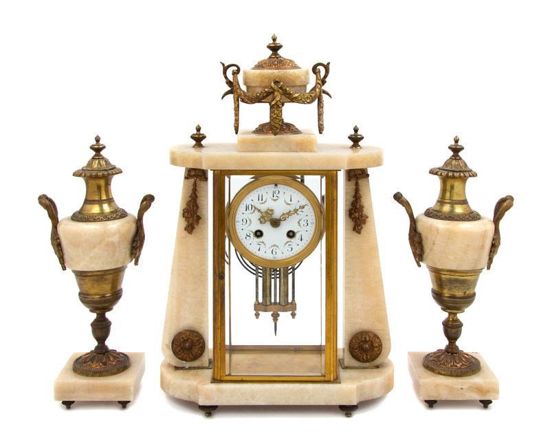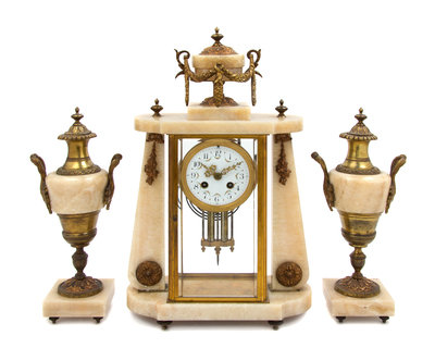 A French Onyx and Gilt Bronze Clock Garniture