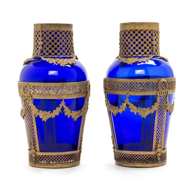 A Pair of Gilt Bronze Mounted Cobalt Glass Vases