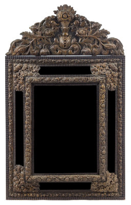 A Dutch Baroque Repousse Metal Mounted Mirror