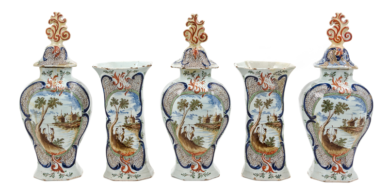 A Dutch Pottery Five-Piece Garniture