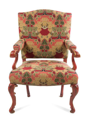 A Venetian Red Lacquered and Parcel Gilt Fauteuil