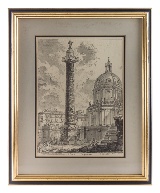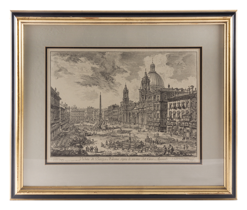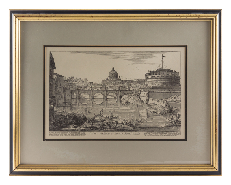 comprising Veduta del Ponte e Castello Sant'Angelo, Veduta di Piazza Navona sopra le rovine del Circo Agonale and Colonna Trajana, after etchings from the Vedute di Roma series.