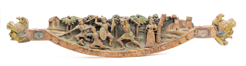 with carved inscription MARBELLO LIBERA ROSANA, depicting a battle scene.