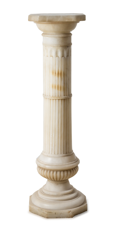 the square top with canted corners above a fluted columnar standard, raised on an octagonal base.