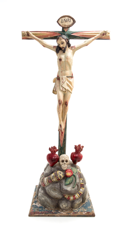 A Carved and Painted Wood Corpus Christi