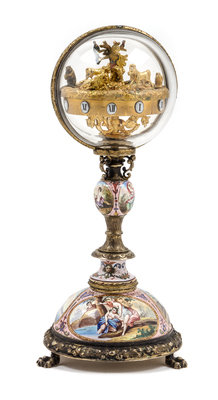 having a spherical dial with segmented numerals raised on a baluster form standard.