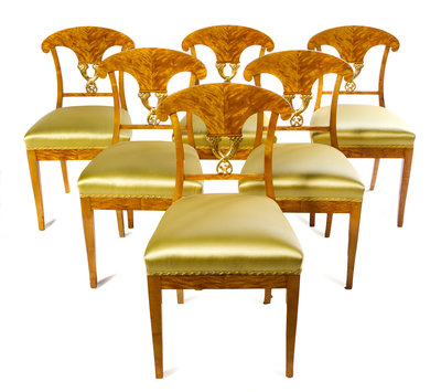 A Set of Six Biedermeier Parcel Gilt Satinwood Side Chairs
