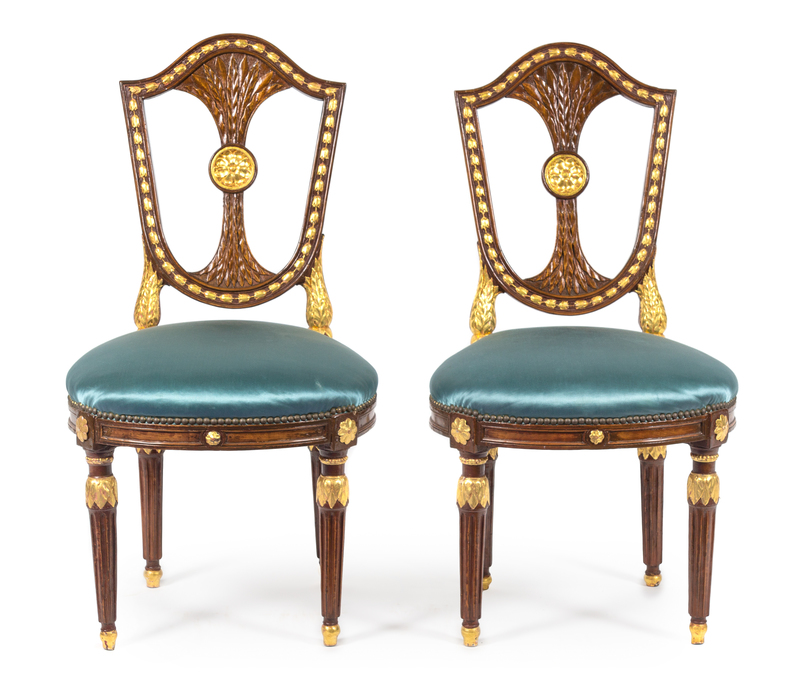 A Pair of Russian Neoclassical Parcel Gilt Mahogany Side Chairs