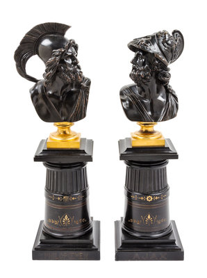 one example depicting Philopoemen and the other Ajax, each raised on a fluted columnar pedestal ending in a stepped square base.