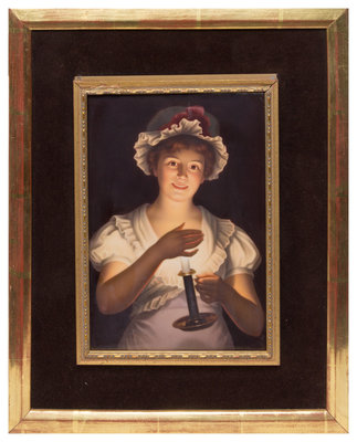 depicting a young girl holding a chamberstick, apparently unsigned.