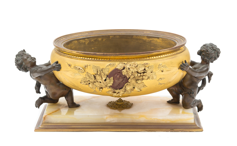 A Continental Gilt and Patinated Bronze and Onyx Jardiniere