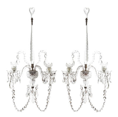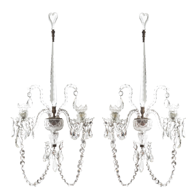 A Pair of George III Cut Glass Two-Light Sconces