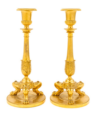 each of columnar form, with tripartite monoped supports joined by a circular base.