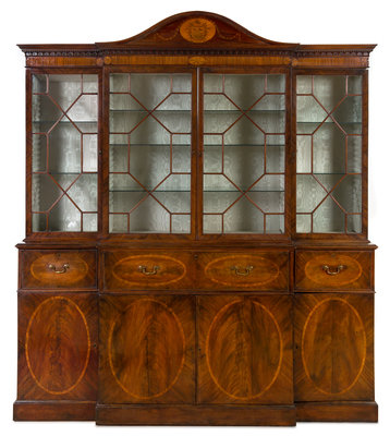 A George III Inlaid Mahogany Breakfront Bureau Bookcase