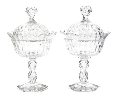 A Pair of English or Irish Cut Glass Urns and Covers