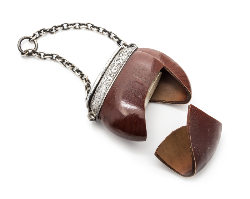 the body made from a chestnut, the silver lid worked with floral and volute motifs.***BOOKED TO LOST AND DAMAGED 10/20/2016 TAH***