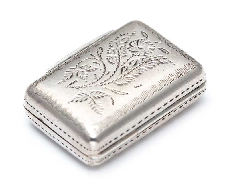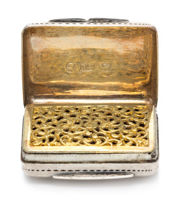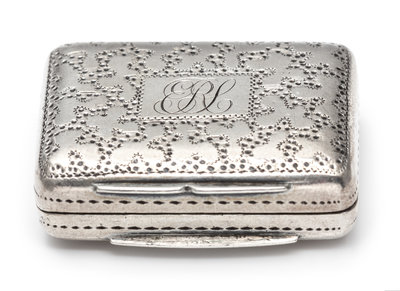 the lid with wrigglework decoration, centered by a monogrammed cartouche.
