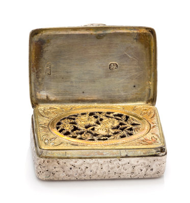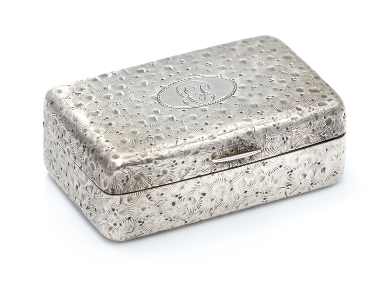 the case worked with floral decoration throughout, the lid centered by a monogrammed cartouche.