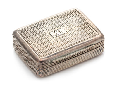 the lid having engine turned decoration centered by a monogrammed cartouche.