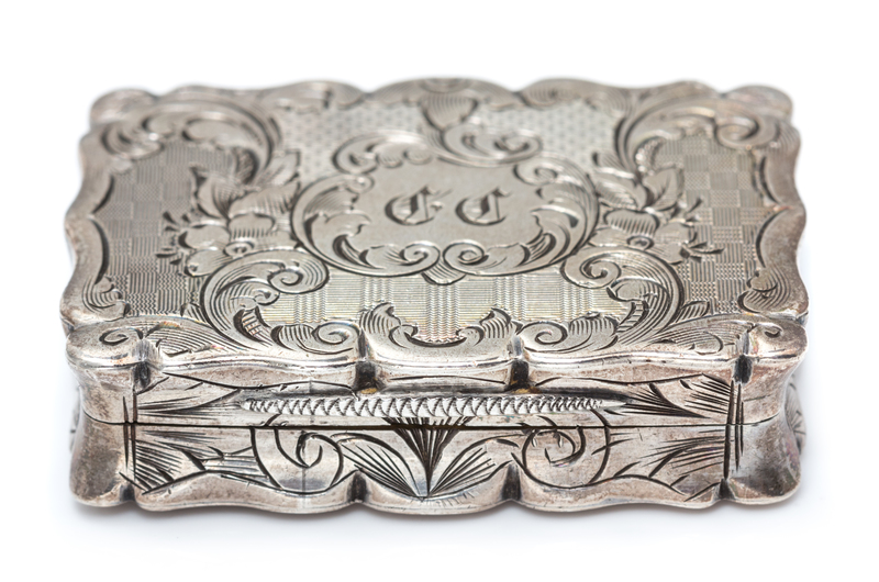 the case with floral, foliate, C-scroll and geometric decoration, the lid centered by a monogram.