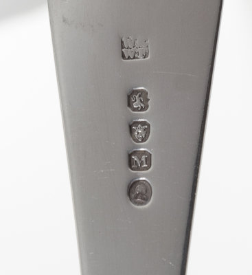 the handle with an engraved crest of an arm embowed clutching an arrow under the motto NON EGET ARCU.
