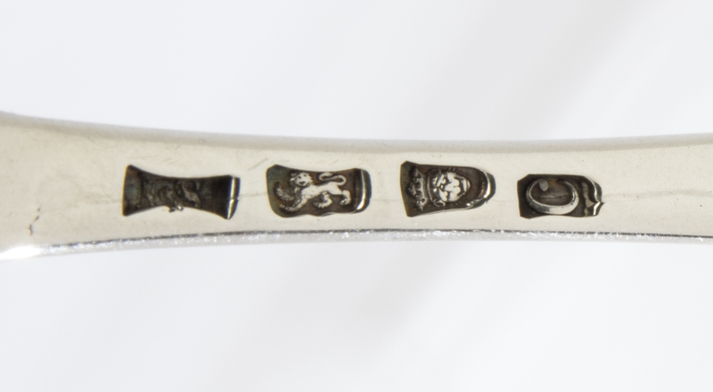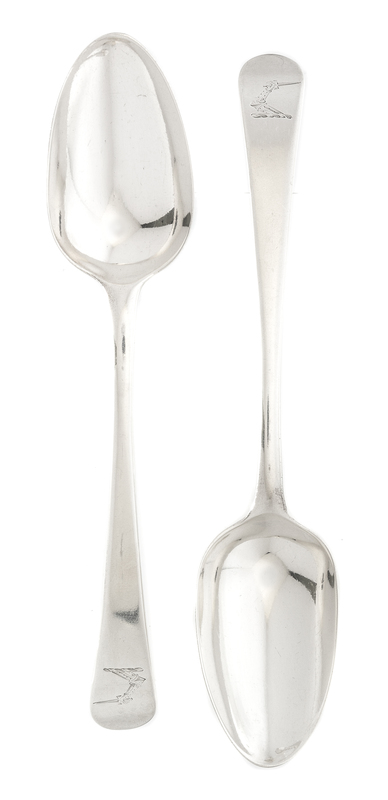 the handle with an engraved crest of an arm embowed with armor and clutching a dagger.
