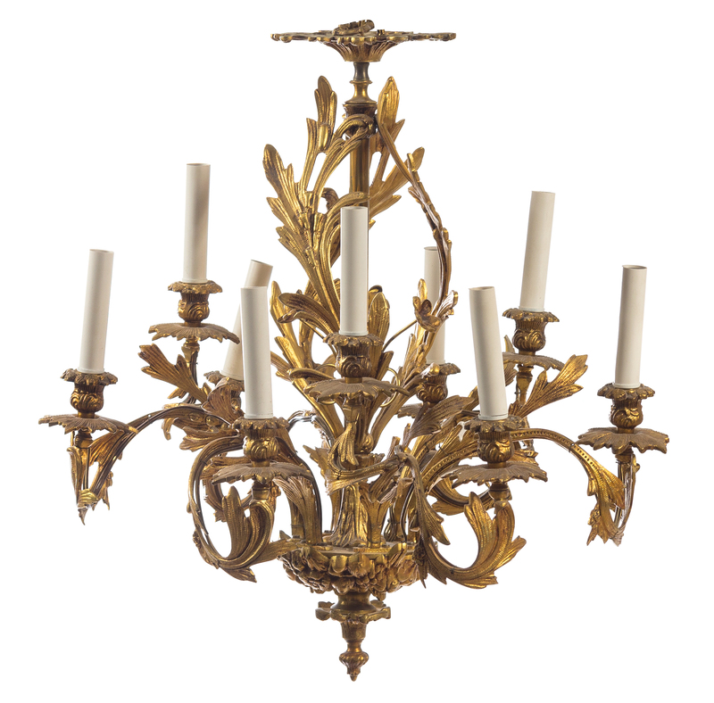 A Louis XV Style Gilt Bronze Eight-Light Chandelier