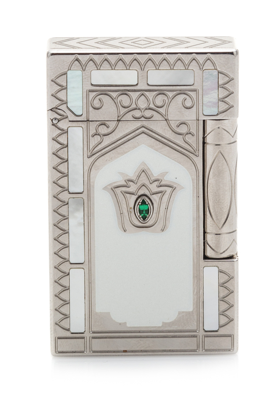A French Platinum, Emerald and Mother-of-Pearl Inlaid Pocket Lighter